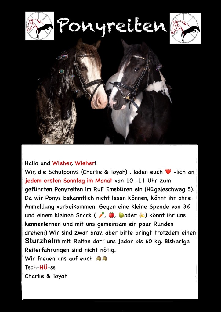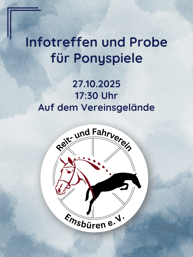 Es findet ein Treffen statt, bei dem alle interessierten Mitglieder Informationen zu den Ponyspielen bekommen und ausprobieren können, ob sie mitmachen wollen.