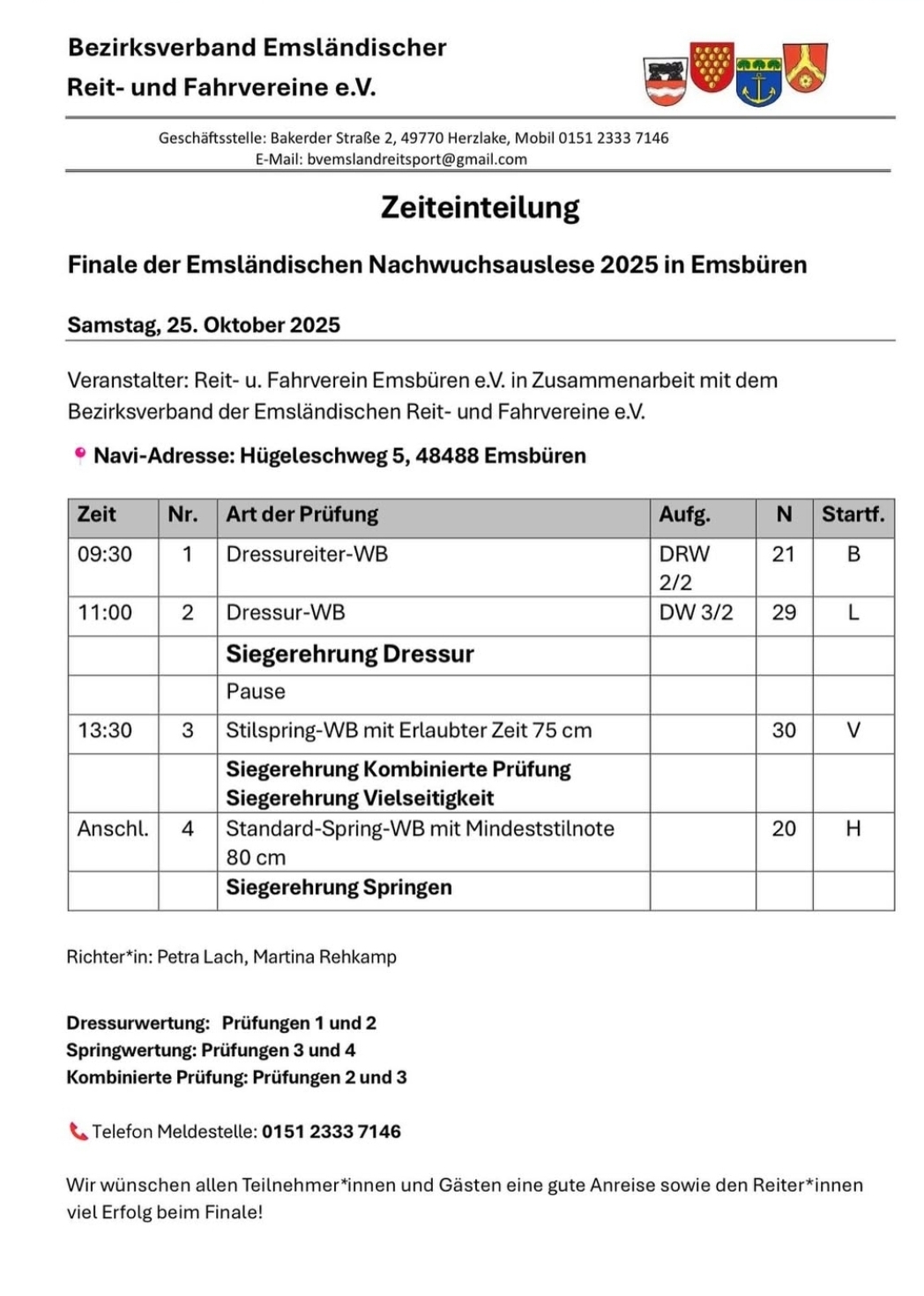 Zudem können sich Teilnehmer mit dem Jahrgang 2010 und jünger für die Emsländische Nachwuchsauslese qualifizieren.