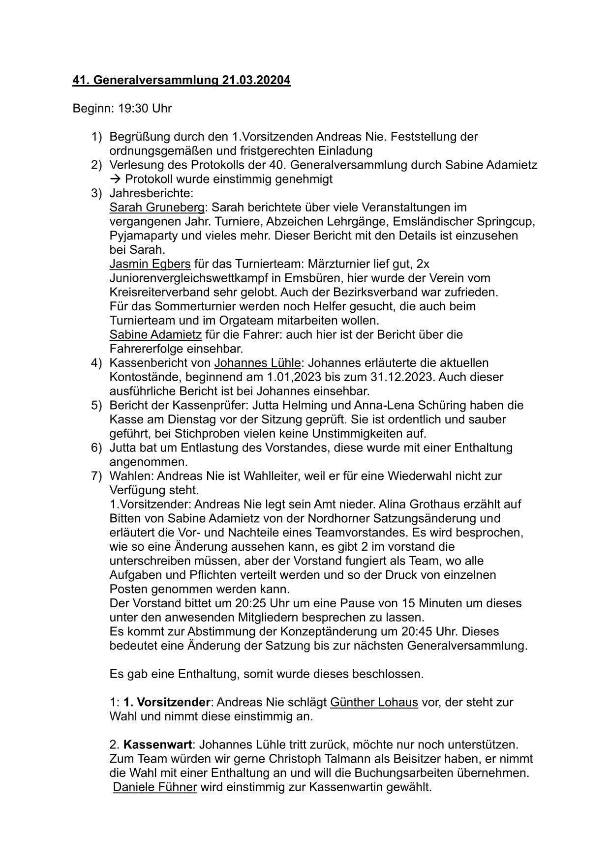 Hier befindet sich eine Übersicht über unsere letzten Protokolle der Generalversammlungen.