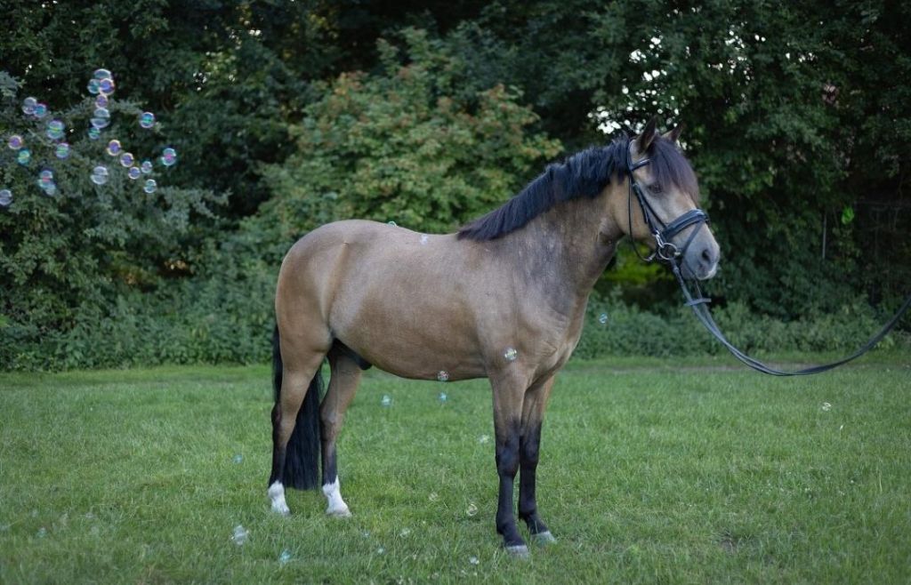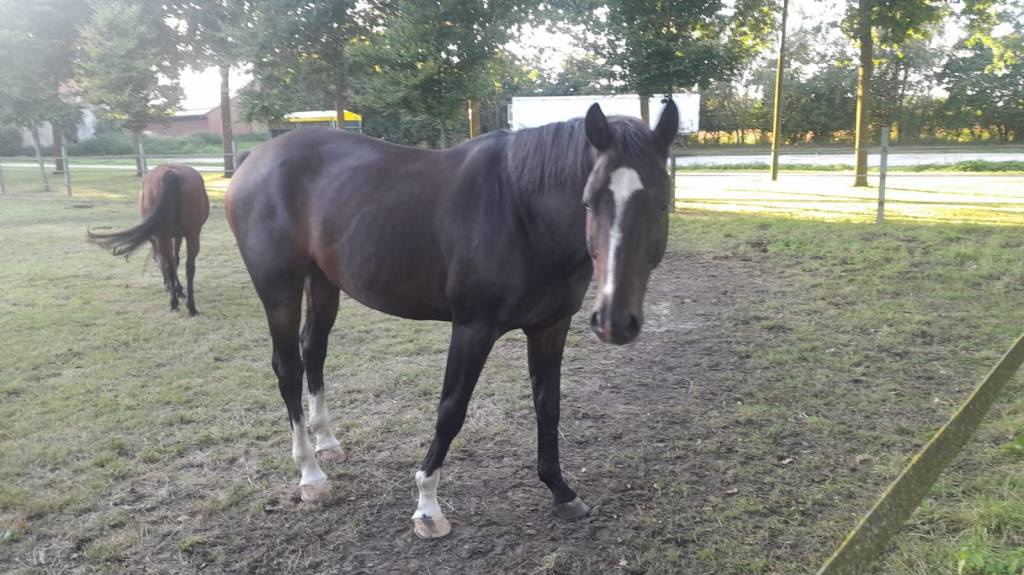 Er läuft für die kleineren Reiter an der Longe und im Unterricht für das freie Reiten.