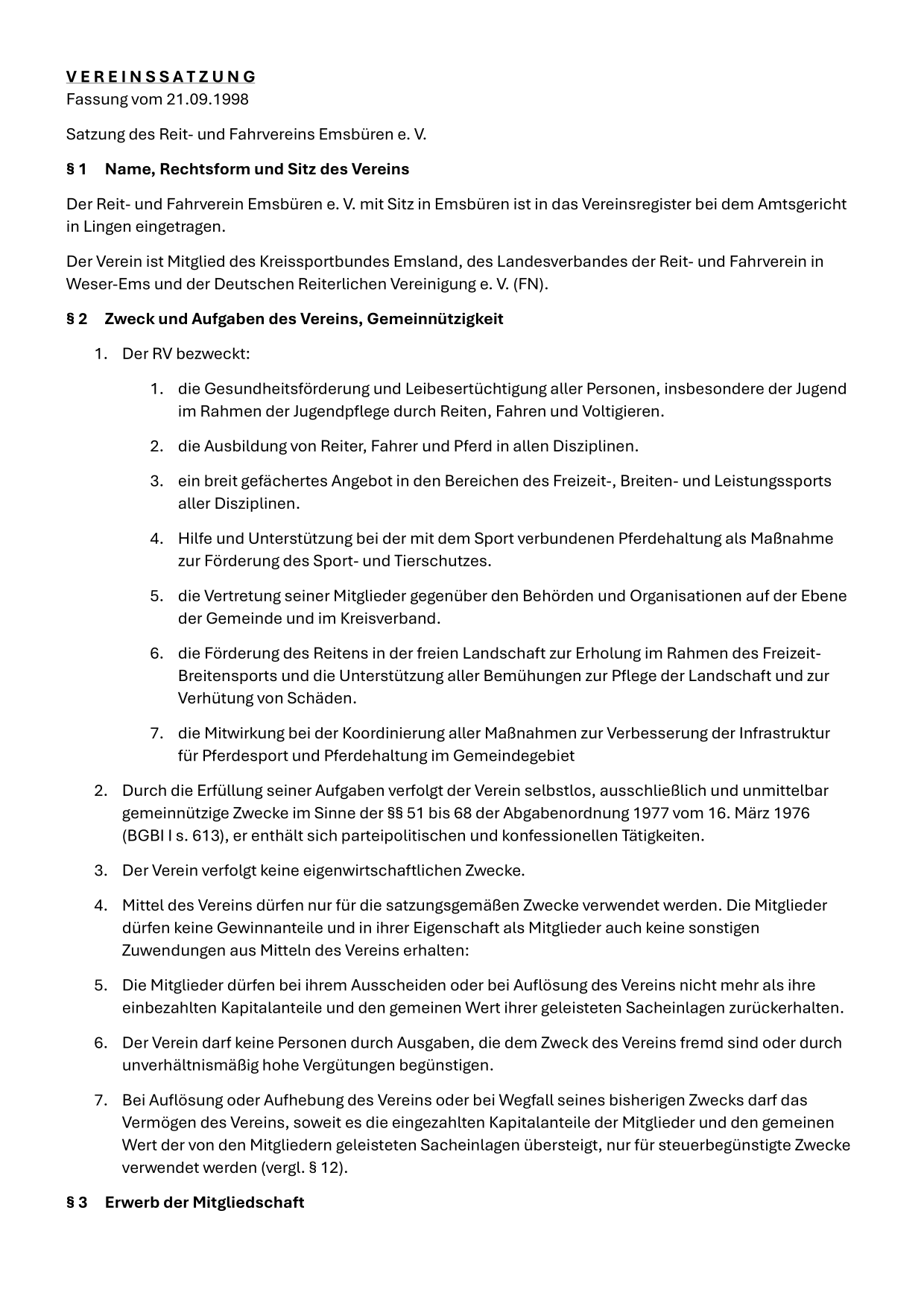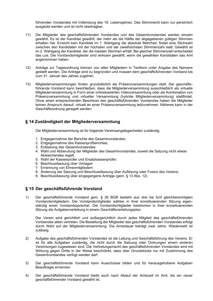 Aktuell überarbeiten wir unsere Satzung. Hier findet ihr die aktuelle Satzung und einen Satzungsentwurf. Der Satzungsentwurf wird in der kommenden Generalversammlung am 03.04.2025 vorgestellt und abgestimmt.